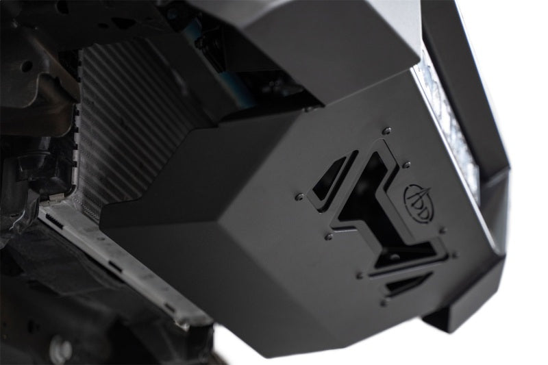 Our Black Label Front Bumper was designed for perfect vehicle fitment with its adjustable side pods. The design incorporates a mounting point for a 20-inch light bar at the center. It retains OEM features such as parking sensors, and adaptive cruise control with use of our ACC Relocation Bracket (Sold Separately). The bumper is finished in a 2-stage hammer black powder coat for style and durability. And as always, this is fully bolt-on and made in America.